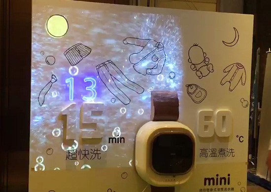 高科技產品通常是既新奇、又複雜,複雜到消費者難以理解;光雕科技藝術最能夠吸引消費者的注意!『壁掛式洗衣機』體積很小,超快15分鐘洗淨、方便無比;而且價格非常親民,售價才2.2萬元,很適合小家庭隨洗隨用。光雕藝術的魅力,果然讓消費者爭相詢問。主要的優勢早就在光雕影像中亮麗的重複著,因此業務員的溝通變得輕鬆容易,成交率倍增。