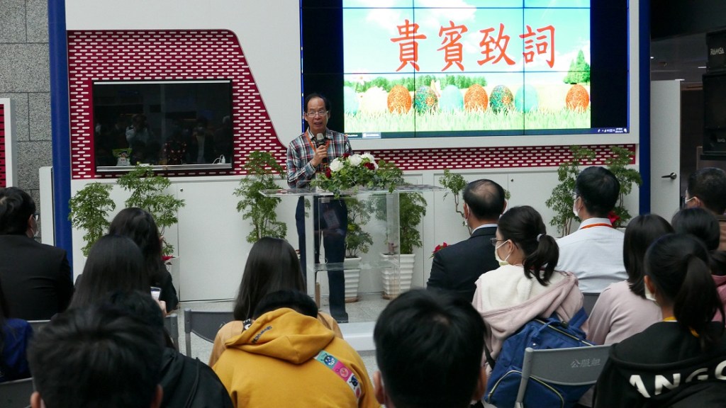 晁陽綠能休閒農場邱仕謙代表致詞,特別感謝洪主任的邀請,讓晁陽也能參與盛會,也特別代表邱信富董事長對環境教育與探究實作跨域合作表示關心與重視,因此今年由晁陽贊助競賽獎金與獎品,豐富的獎品包含55盒高營養的SPF蛋(俗稱疫苗蛋)、135盒SPF蛋捲及427張門票,以有效激發參賽選手的鬥志。