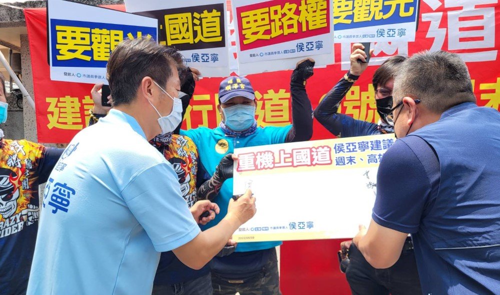 立法院2011年已通過《道路交通管理處罰條例》修正條文,允許在規定的時段和路段開放 550C.C. 以上紅牌重機行駛國道,卻遲遲沒有實行,造成台灣20萬重機車友苦苦等。中華民國重機經營同業全國促進會理事長曾鴻忠、左楠區市議員候選人侯亞寧和高雄重機車隊(高檢屬車隊、悍將車隊、山海車隊)等人今(21)日召開記者會並連署爭取重機合法路權,訴求兩項試行國道10號建議案。