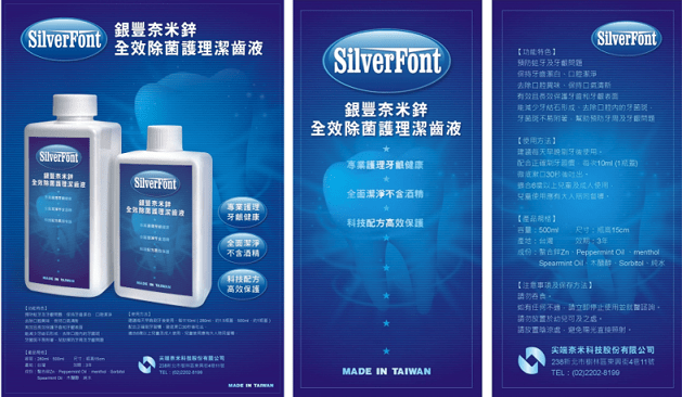 『銀豐奈米鋅 全效除菌護理潔齒液』是MIT台灣精品,不含酒精的科技配方、高效能的專業護理產品,能有效保護您的牙齦健康!Silver Font銀豐奈米鋅『全效除菌護理潔齒液』具備多重功能,從保持口腔潔淨、牙齒潔白,到去除口腔異味、保持口氣清新,長效的保護牙齒和牙齦表面,去除口腔內的牙菌斑、讓牙菌斑不易附著、以減少牙結石形成,並預防蛀牙、牙周病及牙齦問題。