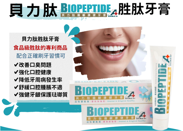 『貝力肽雙胜肽牙膏』解決兩大難關,呵護牙齒健康,使用到永遠。