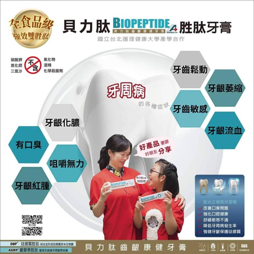 現代生物科技的進步,仿生技術發達,傳統難題不再無解,補充牙齦的膠原蛋白,讓牙齦變得飽滿,便解緩解牙齦萎縮的難題。經過不斷測試,各種配方組合,抑菌成分的比率…等。不但要填補『琺瑯質』隙縫,讓琺瑯質更堅固,還要讓牙齦飽滿,減少牙齦萎縮、牙根裸露的困擾;歷經半年多,再給重視牙齒的朋友使用,終於讓『貝力肽雙胜肽牙膏』誕生,使牙齦萎縮變小,牙齦變得飽滿。