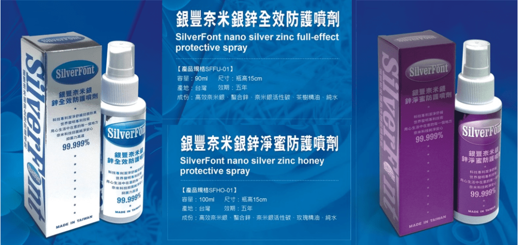 尖端奈米科技的技術,就連防疫門的防護液,都是親膚性、對環境有益的;所以設計出的各種噴劑,更善盡呵護皮膚的責任,淡淡香氣,清清如水、完全沒有刺激性。同時『銀豐奈米銀鋅噴劑』也在民國103年間,陸續得到衛福部優良產品的肯定,再加上品質卓越、良好的使用經驗,都讓尖端奈米科技的『銀豐奈米銀鋅噴劑』系列產品,在市場上快速得到肯定,並願意分享給身邊的朋友。