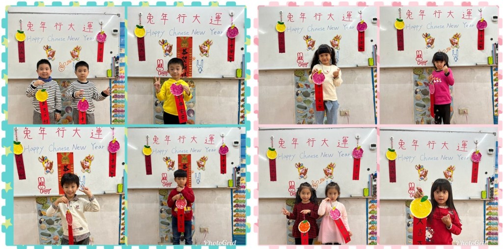 春節的英文是Chinese New Year,也就是『中國式新年』的意思,兔年行大運只是簡單的Happy Chinese New Year,隱約透露出老外對12生肖的陌生。楠梓區『童心園幼兒園』設計喜迎春節的課程,善用各種卡片製作,以迎接春節的到來。例如:利用素材讓孩子製作『一元復始』的紅包袋,然後用簽字筆寫上賀歲吉祥話,例如平平安安、大吉大利、年年有餘…等,醞釀濃濃的年節氣氛。