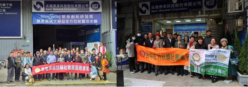 尖端奈米銀泉的『原物料濾芯』研發,大約在2010前後到國際參展,直指技術核心,用材料參展。所到之處包括印度、澳洲、馬來西亞、杜拜、上海,及阿姆斯特丹的世界水資源博覽會,果然贏得許多專業廠商的代工訂單。從濾心研發、濾心代工、到『氫水機代工』成果豐碩!由於疫情爆發,只好轉回國內宣揚飲用水的理念,足跡遍佈全國各地,尤其扶輪社就有100多場公益演講。