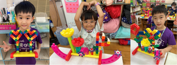 智高創意積木也可以表達愛心!用『智高創意積木』的愛媽咪主題創作,由小朋友各自發揮,堆疊出愛心的圖示、盛開的花朵,不但有趣、而且益智,更容易激發對媽媽的愛心。此外還有利用黏土捏塑媽媽造型的才藝活動,稍微加點裝飾,就是感恩母親的媽媽掛飾,生動、實用、又有意義;帶回家中,又是另類的母親節禮物,不但記錄小朋友的成長過程,還能夠永遠記得對媽媽的愛。