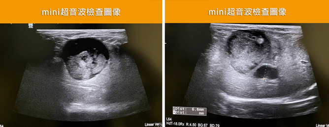 罹患『膽囊黏液囊腫』的貴賓犬!因行為異常而被帶到『啄木鳥動物醫院』就診。在血檢時發現肝膽指數偏高,做腹部超音波時,又發現肝腫大,膽囊黏性囊腫的情形,很可能是膽道阻塞引起的肝腫大及膽囊腫大。另外 Mini 的膽囊膽沙淤積阻塞現象,在超音波底下無所遁形,經過膽囊摘除手術,術後兩天就能正常吃喝了,但只要多拖延1~2天,一旦膽囊破裂就會有生命的危險。
