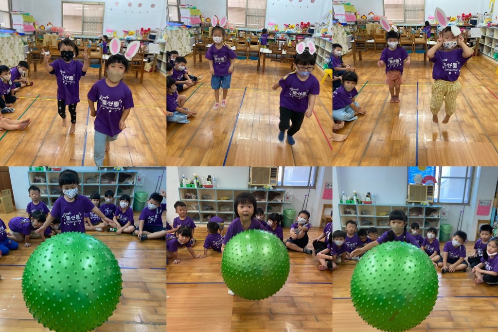 緊接著是動態的幼兒肢體遊戲,玩起『兔子摘月』的活動、戴上帽子,小朋友化身為月宮的玉兔,追逐綠色的大圓球,懷抱『摘星攀月』的氣勢,將感覺統合發揮得無微不至。在楠梓區『童心園幼兒園』的用心照顧下,小朋友們從創意想像的益智遊戲,到節慶美食的畫作聯想,模擬月亮升天的夢幻遊戲,再到動態的肢體遊戲,不論小肌肉、大肌肉的訓練,都能夠得到充分的訓練。
