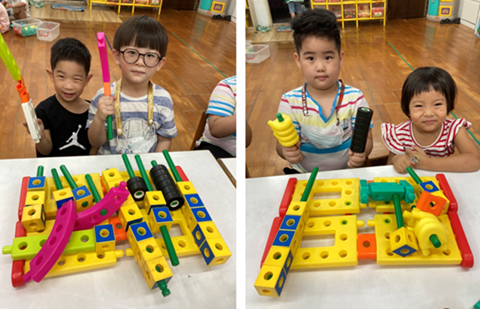 首先是積木創作活動!過去長輩的兒時回憶,中秋節就是團圓吃月餅、及戶外賞月活動,近年來逐漸變成烤肉、外加賞月,因此烤肉BBQ開始受到矚目。楠梓區『童心園幼兒園』讓小朋友天馬行空的發揮創意,用推積積木來創作烤肉BBQ,不但與中秋節息息相關,更讓小朋友充分發揮想像力,用『積木』玩出中秋烤肉的情境,如此『未成曲調先有情』先創作、再準備品嘗中秋美食。