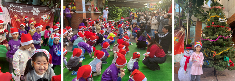 除了介紹過年應景食物、吉祥話之外,進一步邀請小朋友上台進行互動遊戲〈食物圖卡、吉祥話卡的配對遊戲〉等。童心園幼兒園的雙語教學就是多元文化的展現!用遊戲貫穿多元文化的包容性,強調『寓教於樂』的學習環境,盡量設計能讓家長參與的親子活動,豐富的節慶活動,讓孩子們感受滿滿的年節氣氛,更要在歲末感恩季節,透過活動設計,傳達對不同文化節慶的體驗教育。