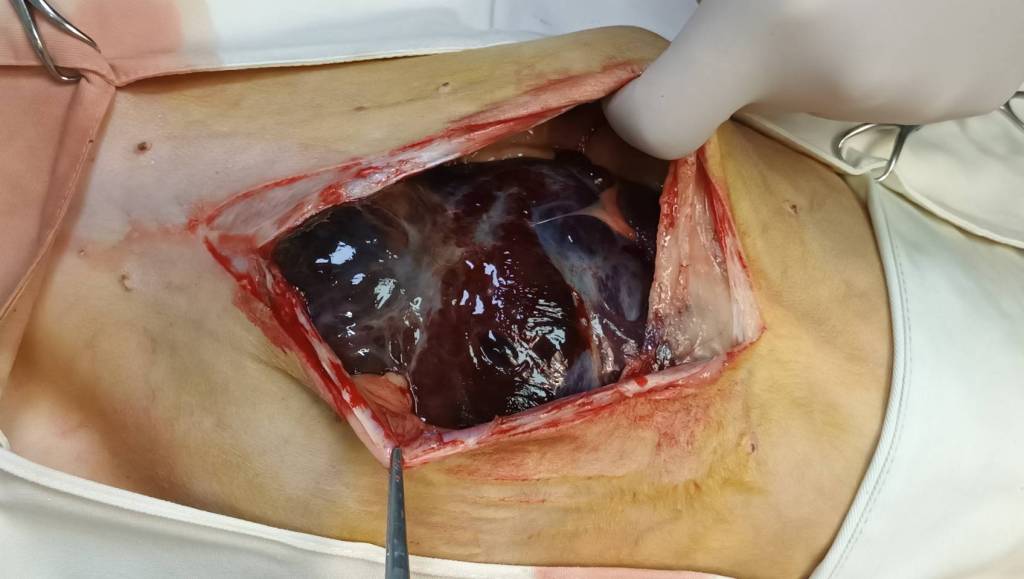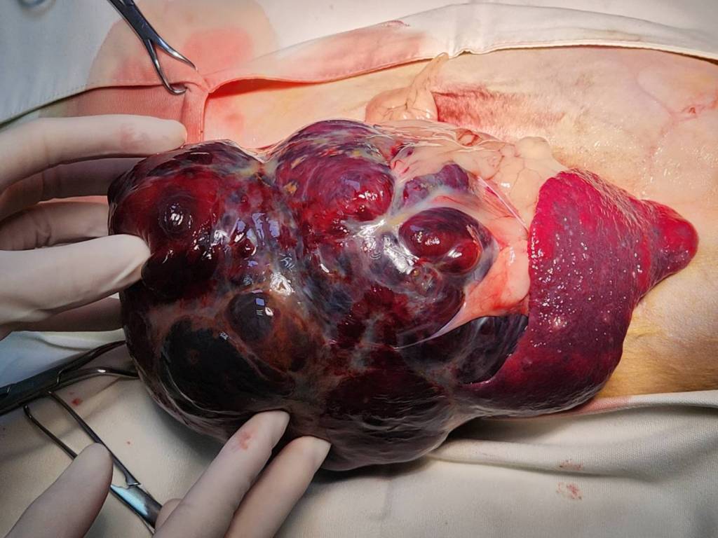 脾臟是富含血管的器官,也是身體最大的淋巴器官,負責貯存血液及免疫功能。脾臟的『血管肉瘤』如果沒有被發現,由於血流非常豐富,會很快地變大,如果變得更大,甚至腫瘤破裂,導致血腹,會讓寵物低血壓、因而休克、甚至快速死亡。雖然『奶油』有輕微心臟病、又是高齡,但很幸運沒有血腹的問題,使用『超音波刀』手術,既縮短時間、又減少出血,大幅度的降低手術風險。