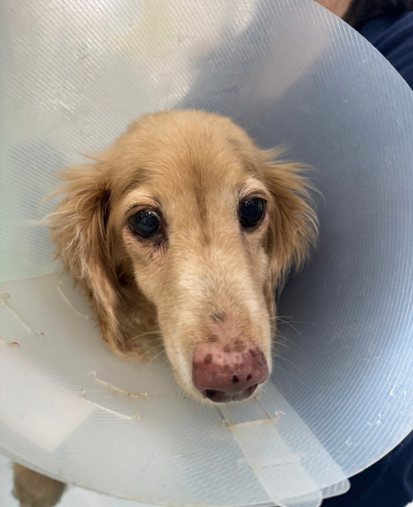 14歲的『奶油』臘腸狗,症狀明顯,趕快檢查,果然是血管肉瘤。