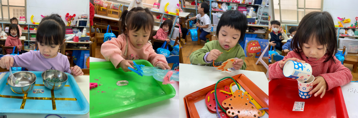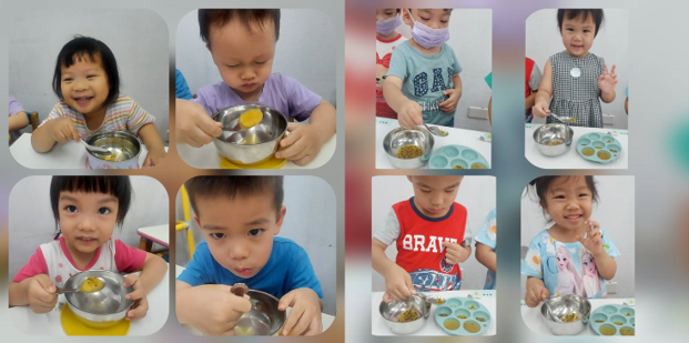 老師的責任,不只是讓小朋友高興,還要分別找出適合每個孩子的遊戲,才能實現『寓教於樂』的理想。在製作冰品同時,還搭配『手眼協調』的遊戲。看似複雜的動作,其實亂中有序、暗合章法,分別是舀豆、夾物、穿線、倒水的小肢體活動訓練,而且與冰品製作的程序不謀而合;這也讓孩子們拿到食材時,都能夠從容不迫、不慌不亂的進入狀況,往後想吃冰,就可以自己處理了。