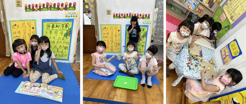 各種型態學習環境:語文區、美勞區、積木區…充分配合主題活動。