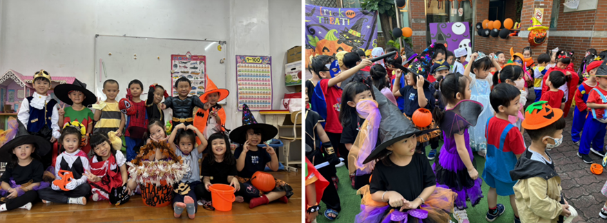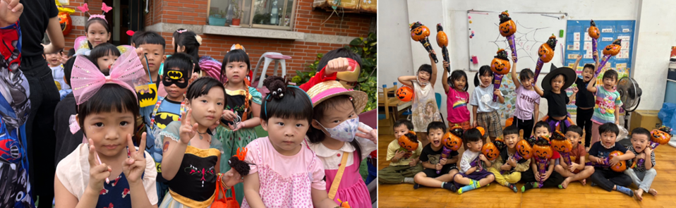 幼兒園的萬聖節,早就成為時尚變裝秀,小朋友們的精心打扮,也是孩子及家長們,展現創意和想像力的挑戰。人手一份南瓜造型的禮物,小小年紀就展現超人的風采、蝙蝠俠更是常客,巫師不分男女、紛紛戴上巫師帽…,雖是奇裝異服、卻又美不勝收。孩子們臉上充滿自信和喜悅,老師和家長就是最佳粉絲,活動充滿了歡樂和笑聲,充滿浪漫回憶的派對,每個人都是最受歡迎的明星!